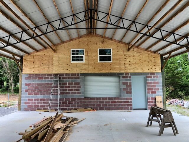 Construction Phases: 1)Pole/metal truss roof 2)Pad plumbing 3)Pour concrete pad 4)Block building5)Cieling/floor 6)Electrical, LAN, Interior plumbing 7)Second Floor